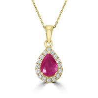 World-class workmanship in 14k yellow gold and unique design make this amazing pendant one-of-a-kind. With the sparkly beauty of Ruby and round Diamonds, this marvelous pendant is a lovely addition to any outfit to look stunning.