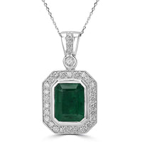 Make a distinct style statement every time you adorn this grand 14K white gold pendant. This glittering pendant offers an incredible luster and sparkle with its emerald-cut Emerald and round Diamonds, which will turn heads. Wear it to embody charm into your look!
