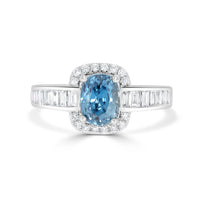 2.33 Blue Zircon Rings with 0.71tct Diamond set in 14K White Gold