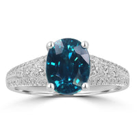 Fashioned of 14k white gold for a refined finish, this glorious ring adds a dash of glamour to your look. Set with a radiant oval-cut blue Zircon, the glittering round Diamonds around give this luxurious ring a mesmerizing finish. A scrupulous design to amp up your jewelry game!