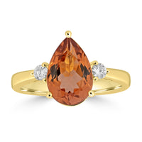 This beautiful ring appeals to those seeking a classy and refined piece of jewelry. Expertly crafted in 18K yellow gold, it adds instant flair to any attire. With its world-class design, adorned with pear-cut Tourmaline and round Diamonds, it exudes timeless beauty.