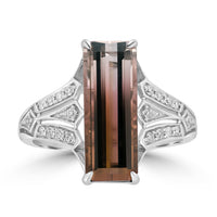 Indulge in the artistic allure of this 18K white gold ring. With undeniable brilliance and spectacular charm, it effortlessly enhances your style. Adorned with an emerald-cut Tourmaline and round Diamonds, this enchanting piece exudes luxury.
