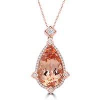 This adorable 14K rose gold pendant is a great accessory that is set with pear-cut Morganite and round Diamonds. The luxury style and world-class design of the pendant will add a touch of refined glamour to your ensembles.