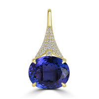This stylish pendant is specially designed by experienced craftsmen to create a scrupulous design. This pendant combines spectacular oval-cut Tanzanite and round Diamonds with 18k yellow gold to create a statement jewelry piece. Excellent artistry!