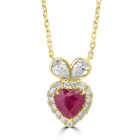 1.15ct Ruby Necklaces with 0.164tct Diamond set in 18K Yellow Gold
