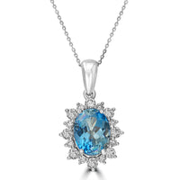 Crafted of 14k white gold, this glamorous pendant is treasured for its natural beauty and radiance. This fabulous pendant showcases oval-cut Aquamarine and round Diamonds to add a touch of refined glamour to your ensembles. This piece is your perfect companion for big and small occasions.