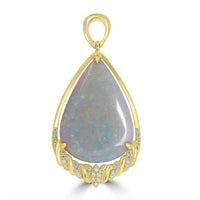 With a sense of contemporary charm, this marvelous pendant that is creatively made of 18K yellow gold is a contemporary piece. The pendant adorned with pear-cut Opal and round Diamonds mesmerizes you with the colors they reflect.