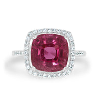 Designed With Lustrous 14k White Gold, This Radiant Ring Is Set With A Splendid Cushion Cut Tourmaline That Catches The Eye. Surrounded By Shimmering Round Cut Diamonds That Add A Generous Dash Of Sparkle, This Gorgeous Ring Is A Perfect Way To Complete Your Look.