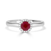 Crafted from 14k white gold, this ring comes with a lovely design, adding elegance to your look. Designed with a round cut Ruby and round-cut Diamond.