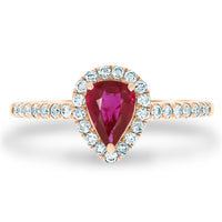 Add A Touch Of Class And Elegance To Your Luxury Look With This 14K Rose Gold Ring. With The Unique Design And World-Class Workmanship, This Piece Is Finely Adorned With Pear-Cut Ruby And Round Diamonds.