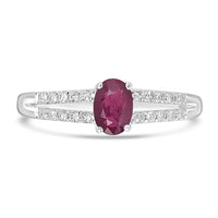 This beautiful 14k white gold ring is studded with an oval-cut Ruby and round Diamonds that stands out like no other.