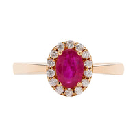 Embellished With A Spectacular Oval Cut Ruby, The Gorgeous Color Of This Gemstone Is Further Heightened By The Shimmer Of The Dazzling Round Cut Diamonds That Surround It. Crafted Of 14k Yellow Gold, This Captivating Ring Is Just What You Need To Give Your Ensemble An Elegant Finish.