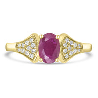 This lovely ring is crafted from 14K yellow gold and set with an oval-cut Ruby and round Diamonds that will brighten the room up.