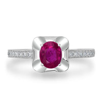 This beautiful ring provides is designed from 18k white gold and set with oval-cut Ruby and round Diamonds. It's sure to get you compliments.