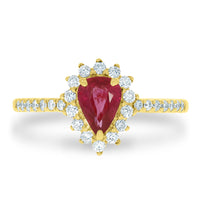This top-quality 14k yellow gold ring paired with a pear cut ruby and a round cut diamond is the epitome of modishness. The ruby’s buoyant hue is toned down by the tranquility of the diamond's serene hue. It is the perfect accessory!