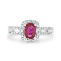 Designed With 18K White Gold, The Endless Glow Of This Gorgeous Ring Comes From The Spectacular Oval Cut Ruby At The Center. Bordered By Splendid Round Cut Diamonds, Its Dazzling Finish Is Truly Hard To Miss.