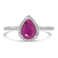 This 14K white gold ring is the perfect accessory when you need that something extra. Set with a dazzling pear-cut Ruby and round Diamonds.