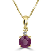 Creatively designed lustrous 14k yellow gold, this striking pendant is set with an round-cut Ruby and round Diamonds.