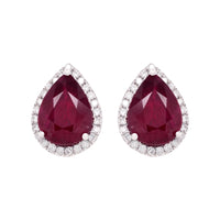 14k white gold and pear cut Ruby come together in perfect unison to form these luxury earrings. Accented by round cut diamonds. Whether you are going for a social gathering, party or a casual day out, this pair of earrings is perfect to revamp your attire.