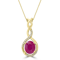 This enchanting 14K yellow gold pendant is the perfect accessory when you need to flaunt your dream look. A fabulous accessory for adding sparkle to your look, this magnificent pendant has oval-cut Ruby and round Diamonds embellishment. Excellent artistry!