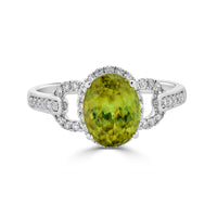 Fashioned from 14k white gold, these luxurious rings and their amazing world-class design that is set with oval-cut Sphene and round Diamonds give a stunning look to your personality.