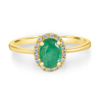 0.88ct Emerald Ring with 0.2tct Diamonds set in 14K Yellow Gold