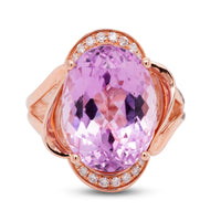 12.92Ct Kunzite Ring With 0.16Ct Diamonds In 14K Rose Gold