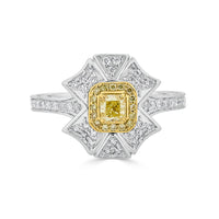 0.33ct Yellow Diamond Ring with 0.8tct Diamonds set in 18K Two Tone Gold