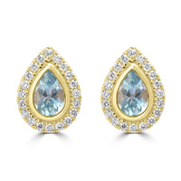 0.69ct Aquamarine Earrings with 0.276tct Diamond set in 18K Yellow Gold