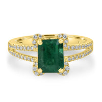 1.53ct Emerald Ring with 0.2tct Diamonds set in 14K Yellow Gold