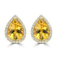 5.62ct Yellow Beryl Earrings with 0.544tct Diamond set in 18K Yellow Gold