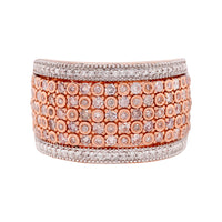 Crafted from a 14k rose gold, this ring has a round cut pink diamond as the keystone and a round cut diamond as a tributary stone. The impressive tint, delicate and fashionable design is ideal for a casual occasion making it perfect for ladies who love to adorn in exceptionally classy jewelry.