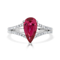 Designed with care using 14kt white gold in a creative pattern, this ring is a stylish piece that lends luxury to your overall look. The pear-cut Rubelite and round Diamonds weave around each other to form this ring.