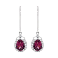 These earrings lends an excellent finishing touch to your outfit and is a great way to display luxury in your look. The pear cut Garnet and round Diamonds are a tribute to the ethereal charm. The 14k white gold is responsibly selected to give a nice base for setting gemstones.