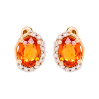 This pair of earrings is the right pick to add a finishing touch to your casual or party ensemble. This royal 14k white gold earring carries meaning for you and the oval cut Mandarin Garnet and round Diamonds will brighten your look!
