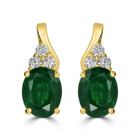 Fashioned from 14k yellow gold, these stylish earrings are set with an oval-cut Emerald and round Diamonds. Perfect for formal parties or dinner with the family.
