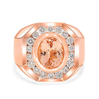 Be enchanted by the world-class artfulness and beauty of this ring that is adorned with oval cut Morganite and round-cut Diamonds. 14k rose gold gives the master craftsman a superior base to create wonderful design.