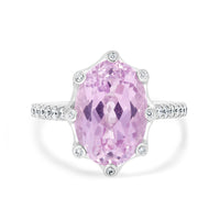 Crafted from 14K white gold, the design of this eye-catching ring exudes maximum brilliance to the piece. Discover a unique piece of luxury style with this mesmerizing ring that is set with stunning oval cut Kunzite and round cut Diamonds.